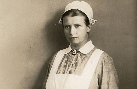 Im Ersten Weltkrieg werden viele Rotkreuzschwestern in der Verwundetenpflege an allen Fronten eingesetzt. Sie sind entsetzt über das große Elend und Leid, das sie mit Hingabe und Mut unermüdlich zu lindern suchen. Am 1. August 1914 erklärt Deutschland Russland den Krieg.